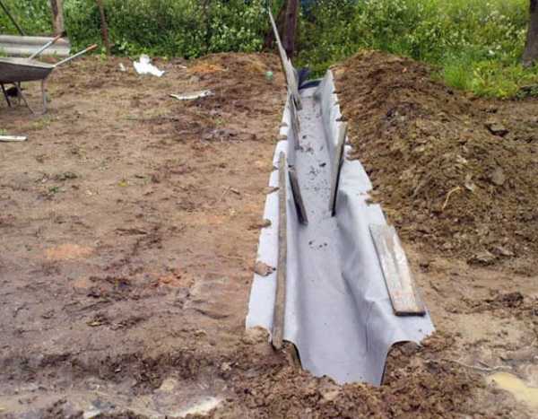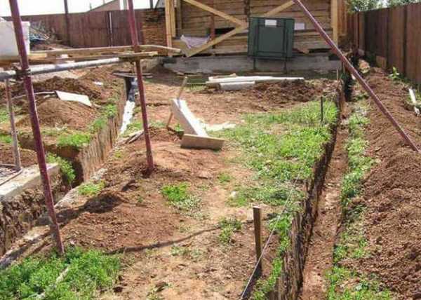 - После тщательной подготовки, выкапываете траншею по всему периметру, где будет проходить водоотводная линия.