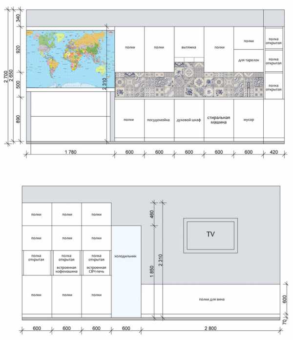 Количество и расположение розеток определяется после составления подробного проекта кухни
