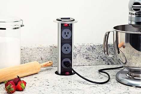 Выдвижные или встроенные розетки компактны, безопасны и легкодоступны