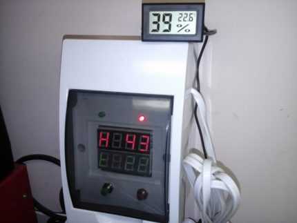 - Цифровой термогигрометр. Более сложный прибор, измеряющий еще и температуру. Измеряет влажность сразу в двух местах: в месте нахождения самого аппарата и в месте крепления датчика. Длина кабеля составляет 1.5 метра. Диапазон измерений 0-90%.