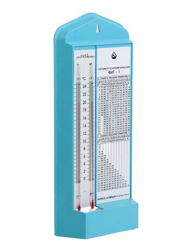 - стационарный. Включает два градусника (сухой и влажный). Работает по принципу, описанному выше. Процент влажности воздуха рассчитывается по таблице.