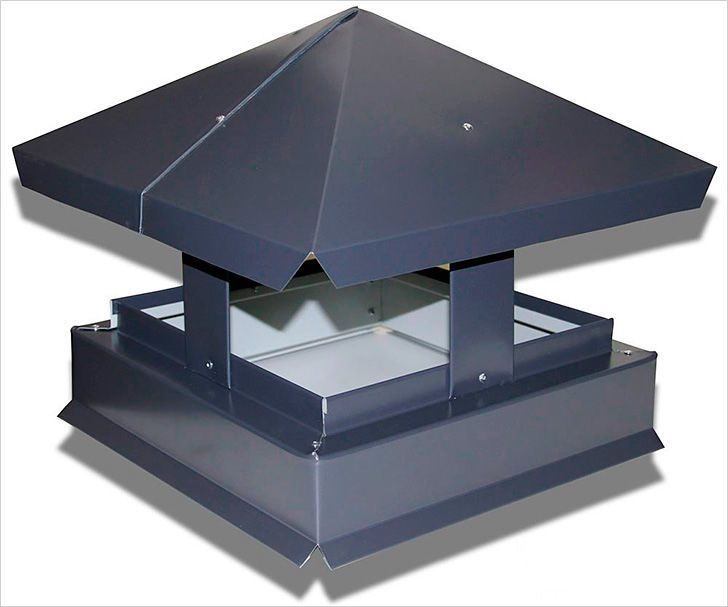 Большинство приспособлений по внешнему виду напоминают скворечник или маленький домик без стен с крышей на небольших опорах и основанием для установки на оголовок трубы.