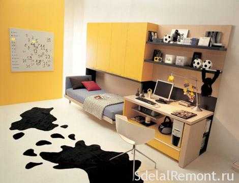 Если ваша комната небольшая, тесноватая, ее стены и потолок рекомендуется выкрасить в светлые тона.