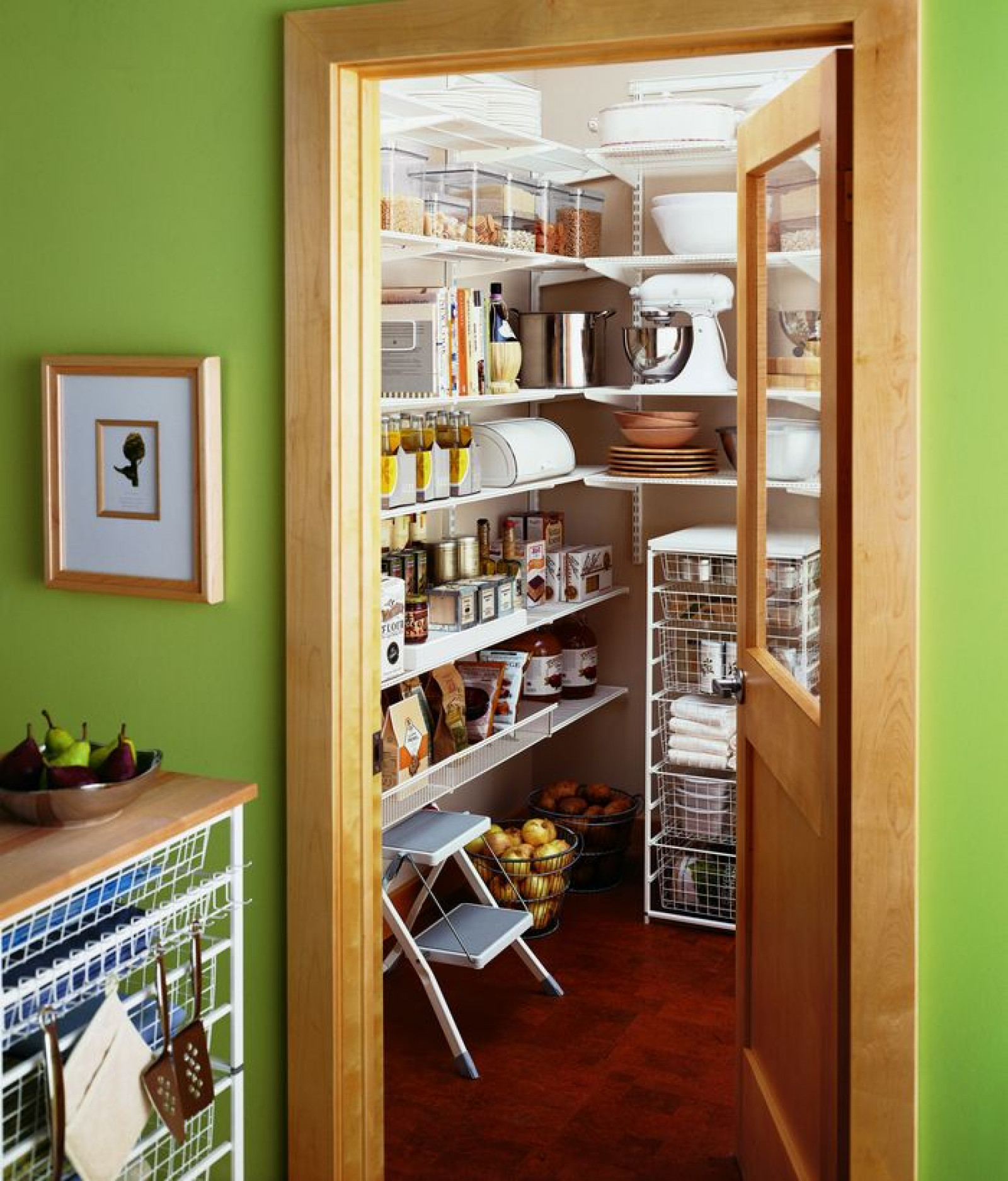 Небольшое укромное пространство – отличный шанс разгрузить кухню и удобно расположить продуктовые запасы и кухонные приспособления. Как правильно организовать пространство:
