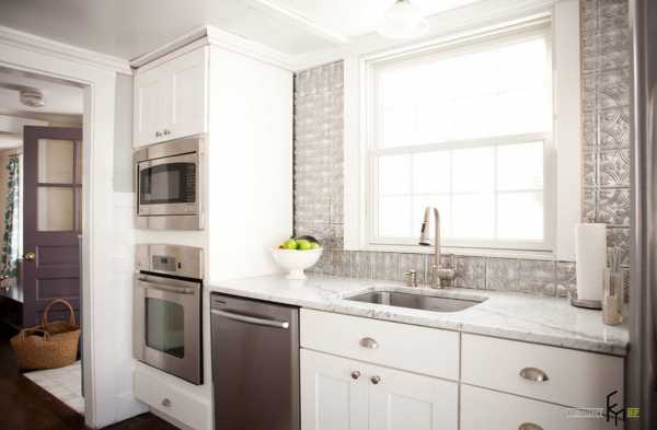 Визуальный эффект расширения пространства можно получить, используя мелкую мозаику для оформления кухонного фартука