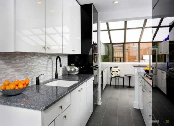 Для оформления фартука над рабочей поверхности белой кухни можно использовать керамическую плитку контрастного оттенка