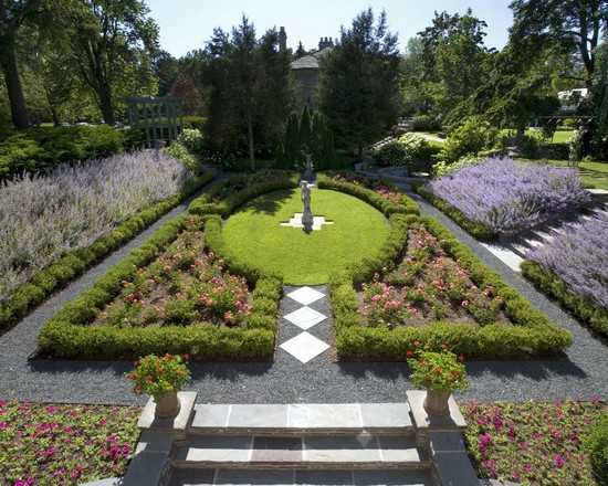 В классическом варианте это симметричные грядки, в центре которых установлена скульптурная группа, фонтан, организована другая зона отдыха. Такие огороды делали возле замков, и были они еще и местом отдыха. Строгая геометрия распланированного участка еще больше подчеркивала великолепие замка. Именно он всегда был в приоритете.