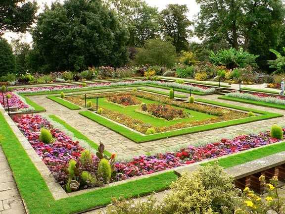 Четкие формы грядок, их границы обозначены бордюрными насаждениями