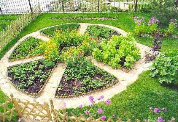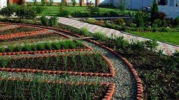 - украшение пряными травами или высадка овощных культур по определенной схеме;