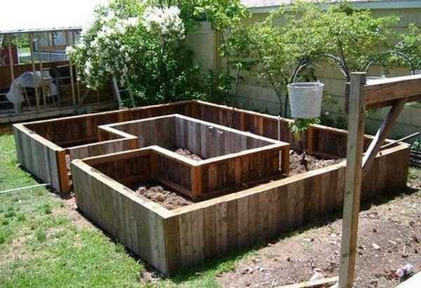 Высокие грядки с оградой из досок
