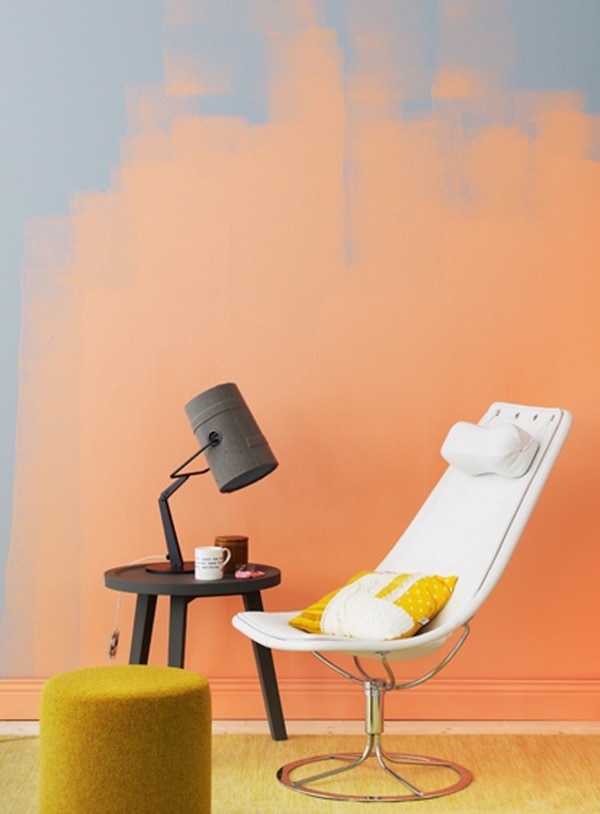 Стиль заключается в плавном переходе от более темного к светлому, с промежуточными цветами. Прием гармонично вписался в способы окраски стен, благодаря внешнему виду. Можно добиться колоссального эффекта проявив терпение.