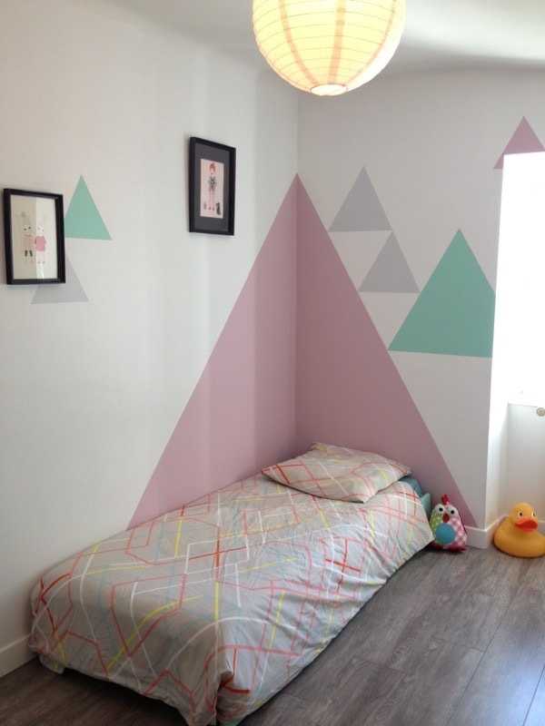 Геометрия на стенах — увлекательная задумка. Этот вариант совмещает в себе асимметрию и ровные грани, визуальные фактуры и яркие контрастирующие элементы. Для создания геометрии на стенах понадобится: