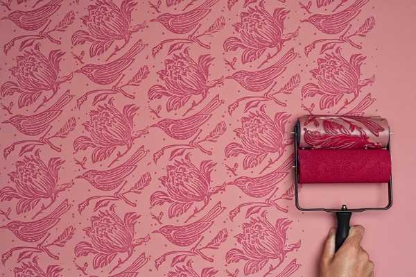 Для того чтобы просто декорировать отдельные участки стены, используй трафареты. Если орнамент на стене будет повторяться, тогда получится поверхность, напоминающая обои. Шаблон можно сделать самому в домашних условиях.