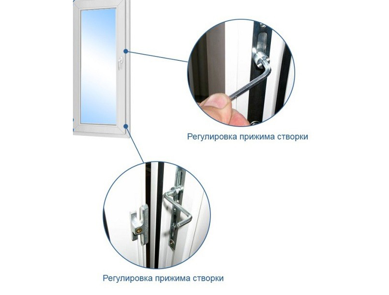 Регулировка в основном подразумевает прижим створки к раме с целью предотвращения поступления воздуха в квартиру или дом.