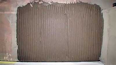 Поверхность основы должна быть подготовлена. Стены из кирпича и бетона нужно очистить от краски, пятен мазута, обработать грунтовкой и выровнять цементно-песчаным раствором. С деревянными поверхностями все обстоит сложнее: к такой стене необходимо приклеить рубероид, а к нему закрепить металлическую сетку с мелкими ячейками (не более 30×30 мм). При этом должно сохраняться небольшое расстояние между стеной и сеткой (в пределах 10… 15 мм). Затем цементно-песчаным раствором следует заполнить это пространство, тщательно выравнивая стену. Для лучшего сцепления кафеля с основой, пока раствор еще сырой, следует нанести беспорядочно на его поверхность насечки. Подготовленная таким образом стена должна сохнуть в течение пяти суток и периодически смачиваться водой во избежание растрескивания.