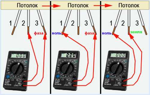 При наличии в электропроводке заземляющего провода, рекомендуется воспользоваться мультиметром. Этот прибор оборудован двумя щупальцами. Вначале устанавливается измерение переменного тока в диапазоне более 220 вольт на соответствующей отметке. Один щупалец фиксируется на конце фазного провода, а вторым определяется заземление или ноль. В случае соприкосновения с нулем, на дисплее прибора отобразится напряжение 220 вольт. При касании заземляющего провода, напряжение будет заметно ниже.