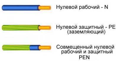 Проводник совмещающий нулевой защитный и рабочий ноль PEN – желто-зеленый на всей протяженности провода, но на конце в месте соединения — синего цвета.