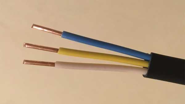 Посмотрим на разрез трехжильного провода, который применяется для прокладки бытовых электросетей.