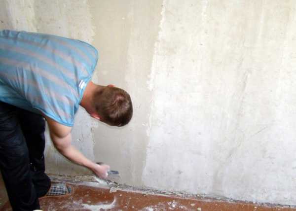 Небольшие неровности, а также мелкие ямки устраняются с помощью разведенной шпаклевки и шпателя. Небольшие наплывы можно счистить со стены.