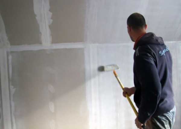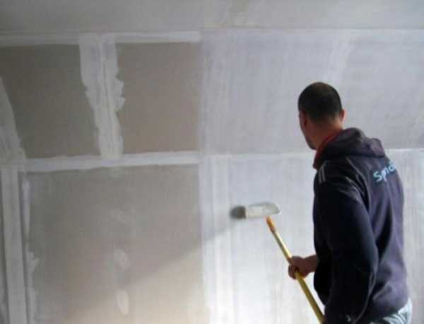 Процесс грунтовки стенЧасто этому уделяется мало внимания, но именно пропитка грунтующими составами обеспечит надежность фиксации.
