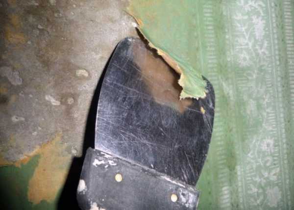 - При помощи шпателя снимаются все отслаивающиеся участки. Это довольно легко сделать: инструмент устанавливают немного под углом и резкими движениями обрабатывают всю поверхность.