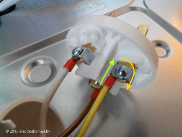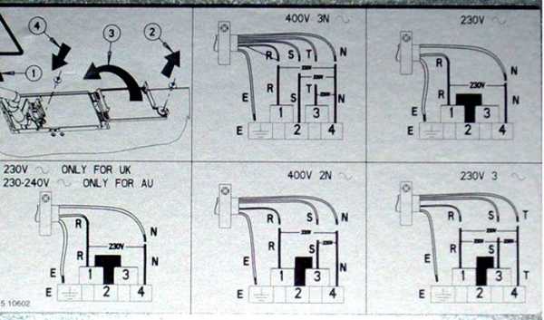 Β Β ΠΡΠ»ΠΈ Π²Ρ ΠΎΠ΄ ΠΏΠΈΡΠ°Π½ΠΈΡ Π½Π° ΠΊΠ»Π΅ΠΌΠΌΠ½ΠΎΠΉ ΠΊΠΎΠ»ΠΎΠ΄ΠΊΠ΅ ΡΠ»Π΅ΠΊΡΡΠΎΠΏΠ»ΠΈΡΡ ΠΈΠ·Π½Π°ΡΠ°Π»ΡΠ½ΠΎ ΡΠΎΠ±ΡΠ°Π½ Π΄Π»Ρ ΠΏΡΠΈΠΌΠ΅Π½Π΅Π½ΠΈΡ Π² ΡΠ΅ΡΠΈ 220Π, ΡΠΎ ΡΠ»Π΅Π΄ΡΠ΅Ρ ΠΏΠ΅ΡΠ΅ΠΌΠΎΠ½ΡΠΈΡΠΎΠ²Π°ΡΡ Π΅Π³ΠΎ Π΄Π»Ρ ΡΠ°Π±ΠΎΡΡ Ρ ΡΡΠ΅Ρ ΡΠ°Π·Π½ΠΎΠΉ ΡΠ΅ΡΡΡ 380Π. ΠΠ»Ρ ΡΡΠΎΠ³ΠΎ Π½Π΅ΠΎΠ±Ρ ΠΎΠ΄ΠΈΠΌΠΎ ΠΎΡΠ²Π΅ΡΡΠΊΠΎΠΉ ΠΎΡΠ»Π°Π±ΠΈΡΡ Π±ΠΎΠ»ΡΡ Π·Π°ΠΆΠΈΠΌΠΎΠ² ΠΊΠ»Π΅ΠΌΠΌ ΠΈ Π²ΡΡΠ°ΡΠΈΡΡ ΠΏΠ΅ΡΠ΅ΠΌΡΡΠΊΠΈ. Π ΠΈΡΠΎΠ³Π΅ Π΄ΠΎΠ»ΠΆΠ½ΠΎ ΠΎΡΡΠ°ΡΡΡΡ 5 ΠΌΠ΅ΡΡ ΠΏΠΎΠ΄ΠΊΠ»ΡΡΠ΅Π½ΠΈΡ.