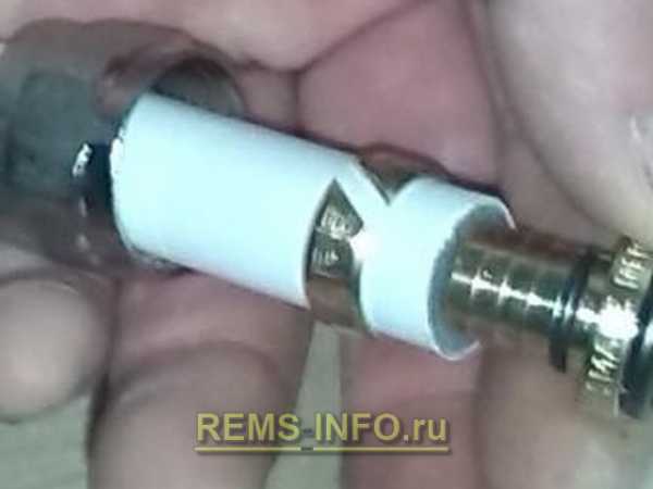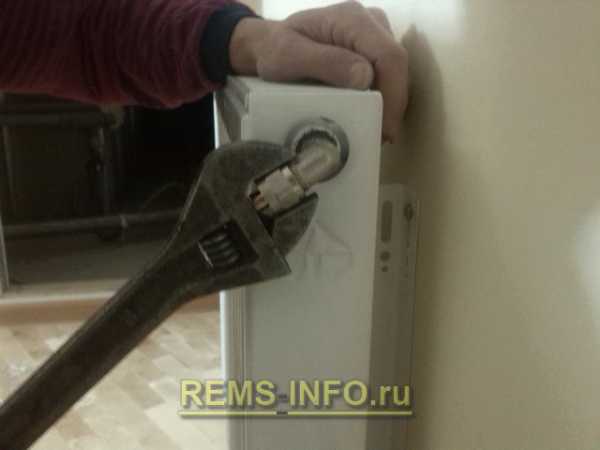 - Кран нужно разобрать, после чего накрутить на радиатор штуцер и накидную гайку.