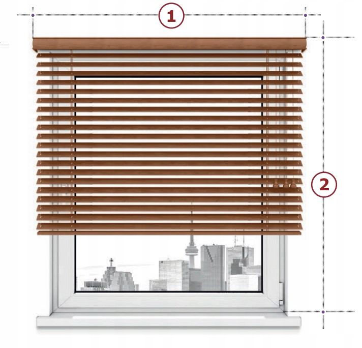 Это будет длина жалюзи в том случае, если подоконник будет выступать за линию оконного проема. А если жалюзи будут скрывать подоконник, то их длина будет равна высоте от потолка до подоконника плюс 5 см. Ширина должна превышать оконный проем на 10 см минимум.