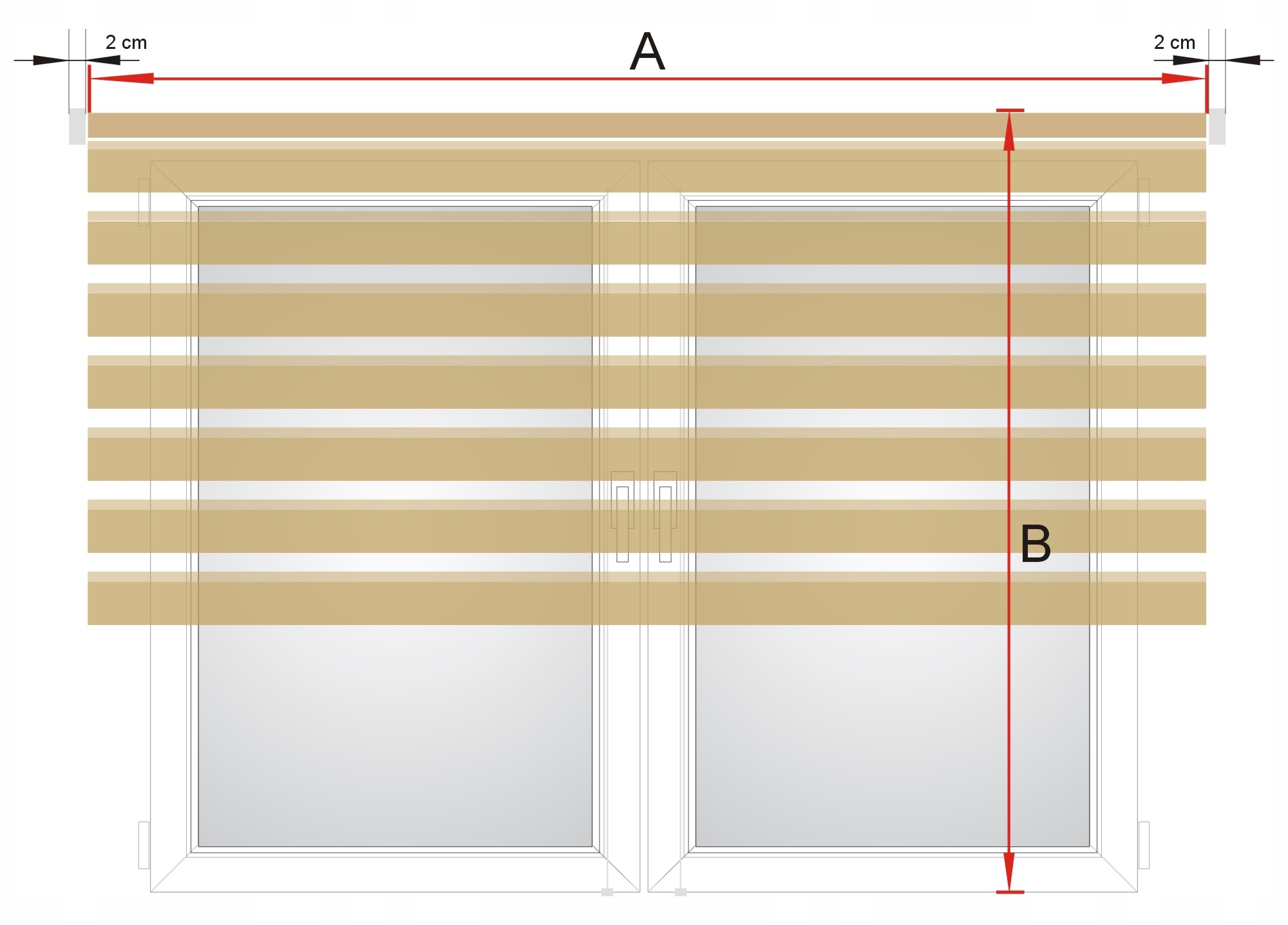 При креплении жалюзи внутри оконного проема ширина жалюзи должна быть минимум на 1 см меньше ширины оконного проема, а высота жалюзи – на 2 см меньше ширины оконного проема.
