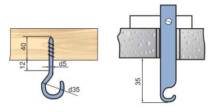 Крюк с закладной для подвеса светильника в полом бетоне.В деревянных домах все по-другому. Крючок имеет шурупную нарезку и просто вворачивается в деревянный потолок. Такое крепление достаточно прочное и выдерживает не только одноламповый подвесной светильник.