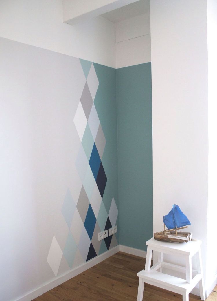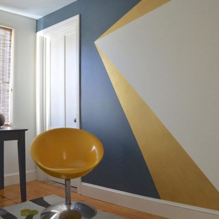 А границы цветов можно не маскировать. - Необычная геометрия из нескольких цветов. Различные узоры из геометрических фигур будут смотреться очень стильно и красочно. Обычно их создают на предварительно подготовленных и окрашенных в один цвет обоях. Как правило, рисуют классические круги, зигзаги, ромбы, штрихи, клетки либо волны.
