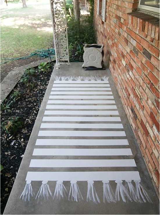Мне очень нравится эта идея с нарисованным ковриком на веранде. Полосы можно сделать и цветными!