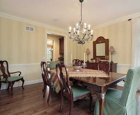 Деление стены ниже срединной линии — это традиционный подход. Такая покраска стен в два цвета подойдет для интерьеров в самых разных стилях: классика, ар-деко, ар-нуво, ретро, кантри. При создании элегантных современных интерьеров такой дизайн стен тоже оправдан. Окрашивание с делением по горизонтали создает имитацию панелей — тех самых, которые монтируются по низу стены. Границу двух цветов стоит оформить молдингом или декоративным бордюром.