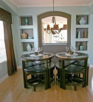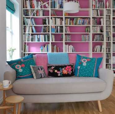 Комбинированная покраска призвана подчеркнуть геометрию подобных конструкций, сделать на них акцент. Любые углубления, ниши, проемы, также части стен за стеллажами и полками могут быть окрашены в цвет, отличающийся от основного цвета стен.