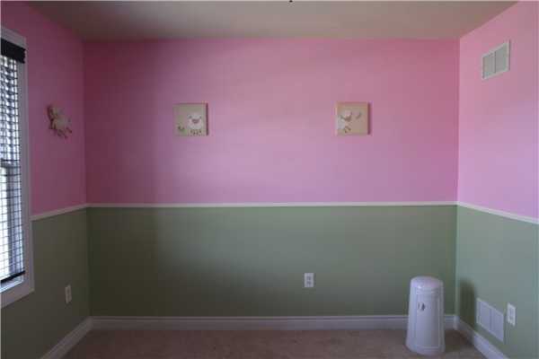 Такое оформление позволяет быстро и эффективно освежить любой интерьер. После окраски стены одним цветом необходимо отметить полосу необходимой ширины. Подобная комбинация идеальна для коридора и детских комнат.