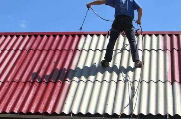 Когда работы по укладке шифера выполнены, можно браться за окрашивание. Краска сделает внешний вид дома более привлекательным, шиферная кровля после окрашивания будет служить существенно дольше.