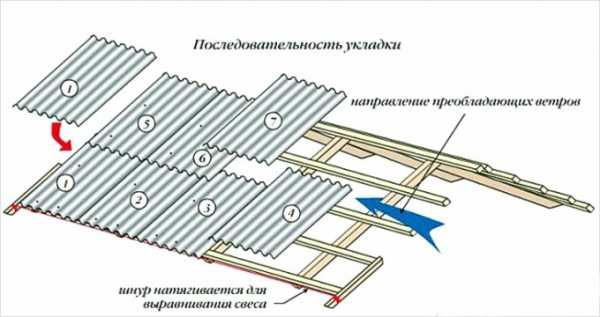 - В основном укладка шиферных листов производится справа налево. Но не стоит забывать о приоритетном направлении ветров.