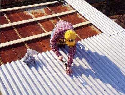 Полезный совет: Гвозди вколачивают в верхнюю часть волны, поэтому длину гвоздя нужно выбирать с учетом высоты волны и толщины бруска обрешетки. В местах крепления дрелью высверливаются отверстия, чтобы избежать растрескивания.