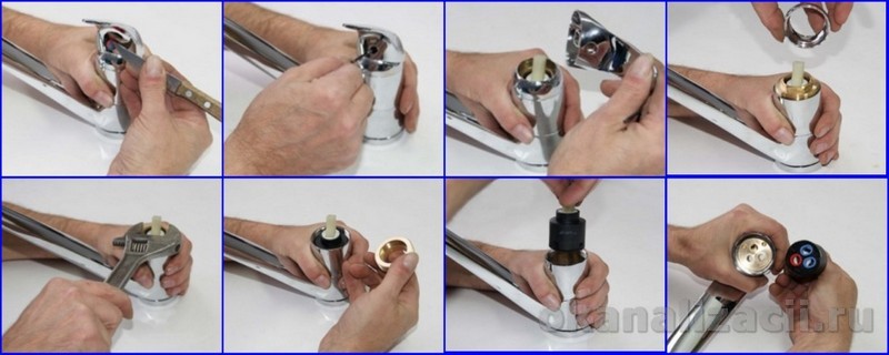 Получив доступ к деталям сантехнического изделия (муфте, сальникам и т.д.), нужно внимательно их осмотреть. Добравшись до уплотнителя, необходимо аккуратно снять его и заменить новым. После этого следует собрать смеситель и проверить функционирование крана. Для этого нужно покрутить его в разных направлениях. После этого открывается магистральный вентиль и дается доступ к горячей и холодной воде.