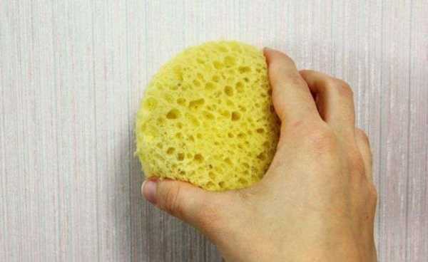 - Не прилагая особого давления на стену, промокнуть обои губкой.