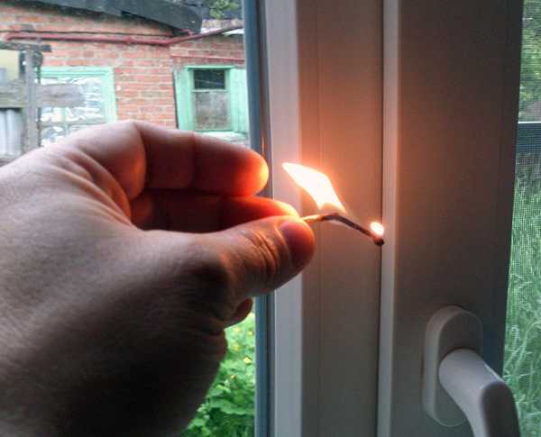 - Аккуратно проведите вдоль линии примыкания окна зажженную спичку или зажигалку. Отклонение пламени укажет на наличие щелей.