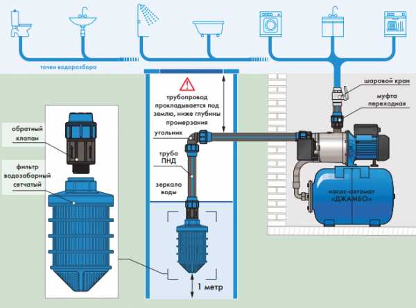 Схема обустройства водопровода с помощью насосной станции