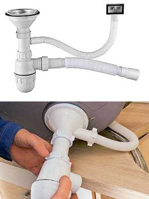 Сифоны для кухни могут быть различные – для обычной мойки, для двойной, одновременно может быть подключены к посудомоечной или стиральной машине, иметь перелив или без такового, пластиковые или металлические, по форме трубы или бутылки. Однако, несмотря на такое разнообразие, все они монтируются примерно одинаково. Именно поэтому мы представляем вам одну инструкцию и дополнительные материалы по установке, имеющего перелив, а также как собрать сифон для двойной мойки.