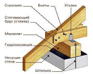 Сами стропильные системы опираются, главным образом, на мауэрлат, который отвечает за распределение нагрузки от стропильного каркаса по стенам.