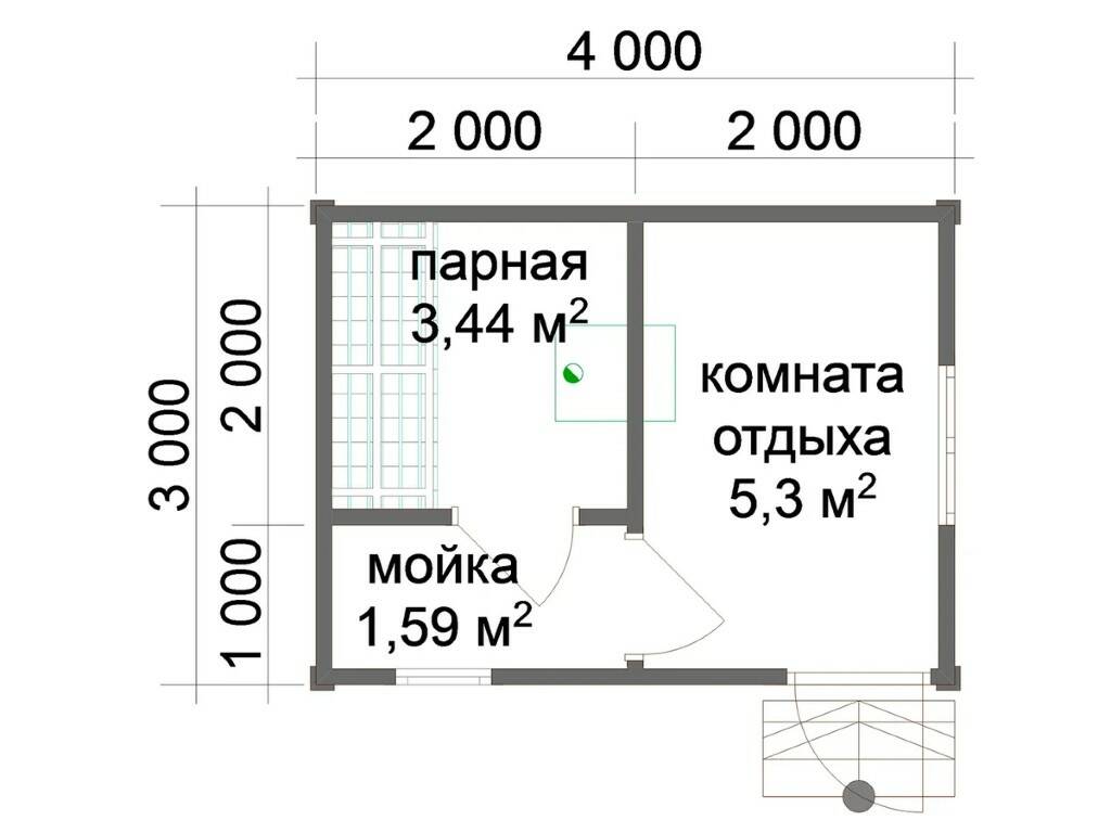 Наиболее целесообразный вариант планировки бани 3х4 м