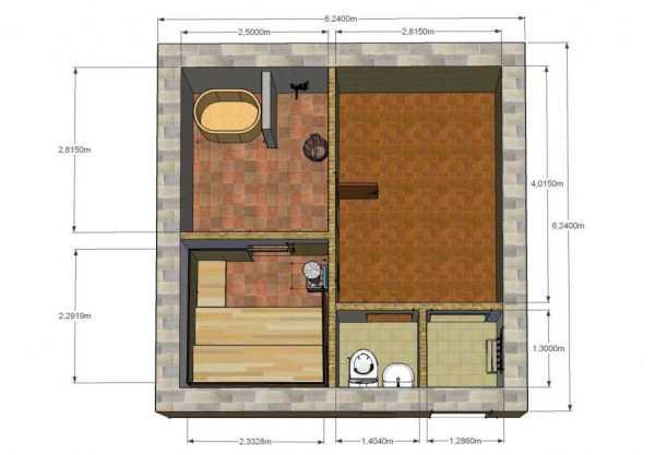 ΠΡΠΎΠ΅ΠΊΡ Ρ ΡΠ°Π·ΠΌΠ΅ΡΠ΅Π½ΠΈΠ΅ΠΌ ΡΡΠ½ΠΊΡΠΈΠΎΠ½Π°Π»ΡΠ½ΡΡ Π·ΠΎΠ½ Π΄Π»Ρ ΠΏΡΠΎΡΡΠΎΡΠ½ΠΎΠΉ ΠΊΠ²Π°Π΄ΡΠ°ΡΠ½ΠΎΠΉ Π±Π°Π½ΠΈ.