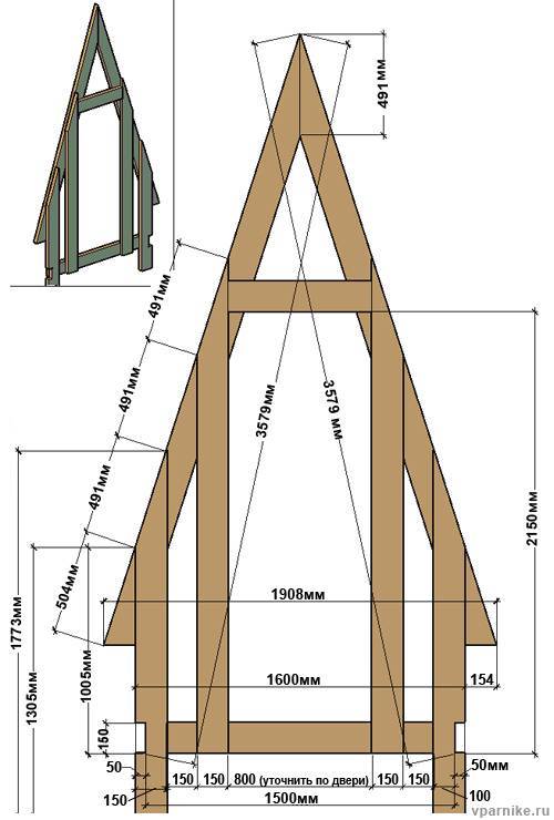 Поперечные бруски под крышу должны выступать спереди на 0,3м, сзади на 0,16м