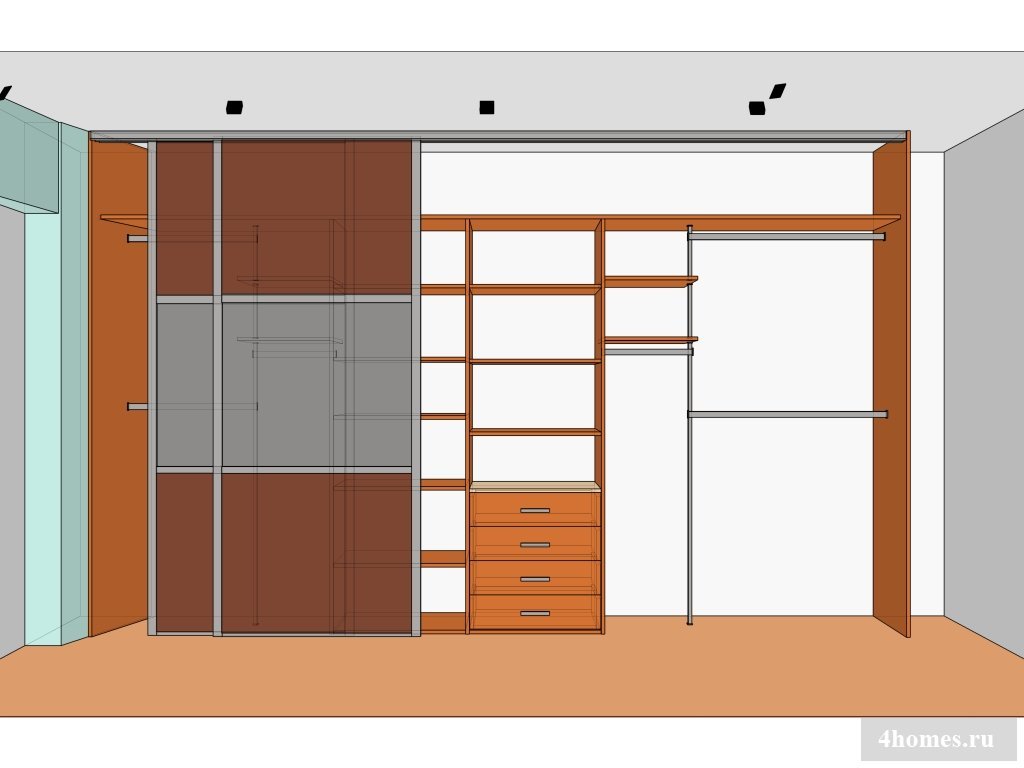 Каждый вид конструкции должен подпадать под общее правило: под штанги с вешалками нужно отводить в три раза больше места, чем под полки.