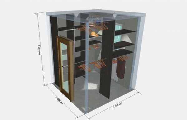 - Размер не менее 1*1,5 м. В более тесной гардеробной не удастся установить полки или в нее нельзя будет войти, что значительно снизит функциональность.