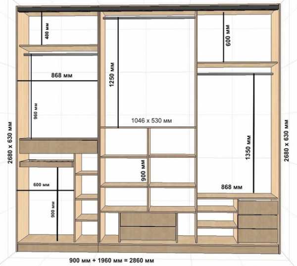 - ширина секций под нижнее белье и шляпы выбирается в соответствии с количеством этих вещей, плюс добавляется небольшой запас.